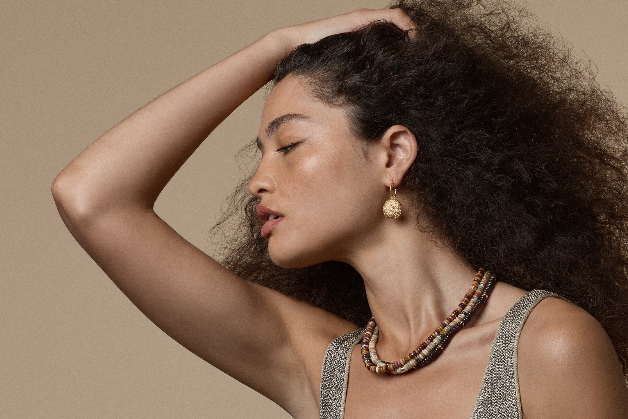 Gaia – Origins is the grounding that follows the tide. It is a journey back to earth, to roots, to beginnings. Where Cordelia was about release, Gaia is about creation. It draws upon the soil of memory, the resilience of stone, and the feminine strength of the earth herself. It honours my mother whose love of jewellery sparked my own and it anchors the next evolution of my story as a designer.