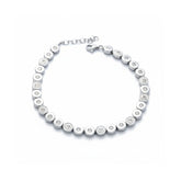 Inspired by Jupiter’s moon, Elara captivates with its celestial charm. Each enamel-highlighted circle cradles a bezel-set crystal that sparkles like a distant star. This modern yet classic bracelet is perfect for layering, stacking, or standing out solo. Crafted from sterling silver with your choice of rhodium or 14K gold plating, it features enamel accents and an adjustable chain for a flawless fit. Elara is a radiant, elegant treasure that captures the beauty of the cosmos in every movement.