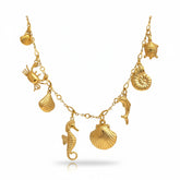 Make a splash with the Thalassa Sea Necklace. This stunning charm necklace, crafted from sterling silver and 14k gold plating, showcases your love for sea creatures. Dive into style with this unique piece.